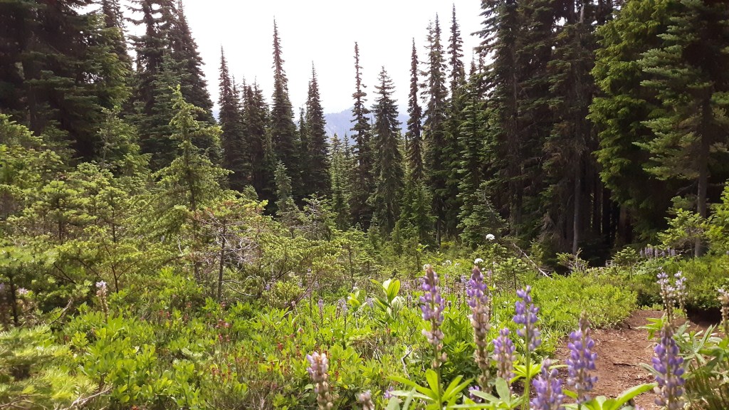 We leveled out for a bit, and then gained some elevation again. We were passed by the same groups of people who went up and also came back down. We went very slowly, but we enjoyed each brutal step. The truly amazing thing was all of the flora! We went from thick evergreens to sub-alpine meadows and up to craggy peak.